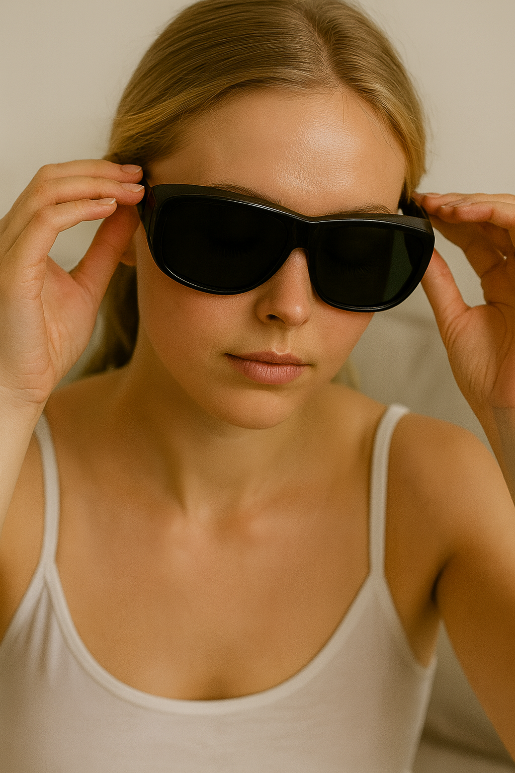 Before starting your session, wear the safety goggles to shield your eyes from the light pulses. Make sure they fit securely and comfortably.