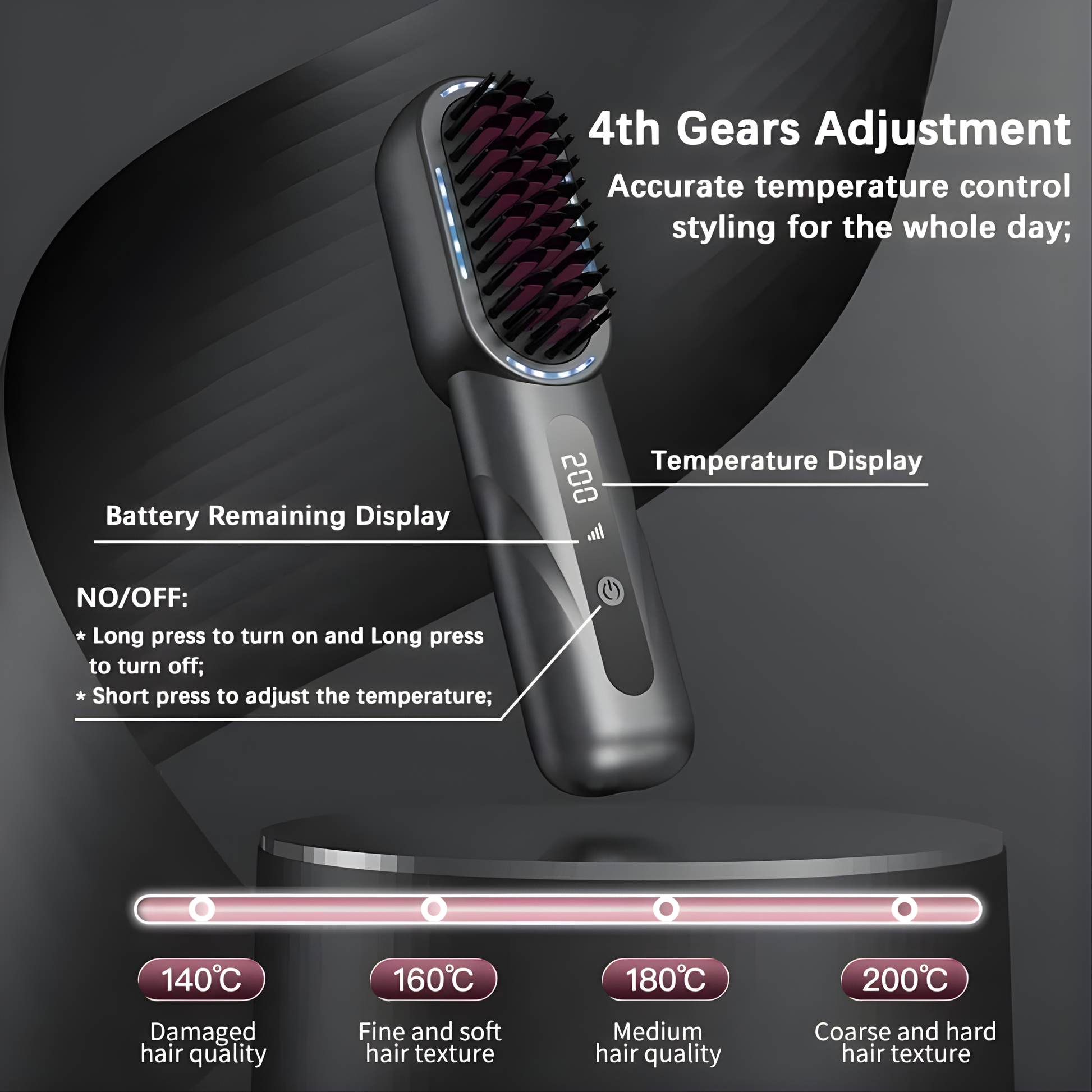 Choose from 160°C, 180°C, or 200°C to match different hair types for safe and effective styling.